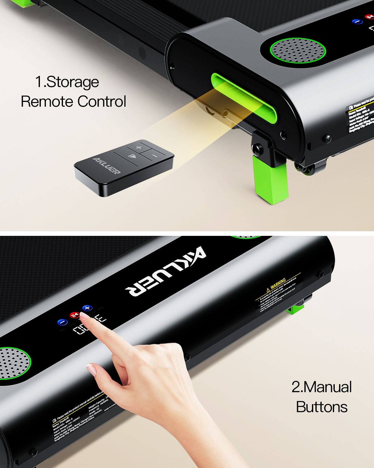 4, Multi-Function LED Screen & Dual Remote Control Mode : Akluer portable walking pad treadmill comes with multifunctional LED Display, the speed, distance, time and calories in real time. You can adjust your speed via touch screen or remote control. The sound port on the treadmill is for decoration only, no Speaker function.