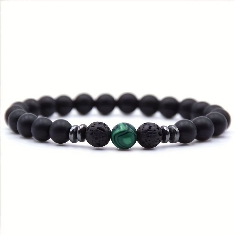 Home > Black Frosted Stone Stretch Beaded Bracelets Gifts For Women Men Silver Plated Energy Healing Yoga Meditation Bangle Jewelry